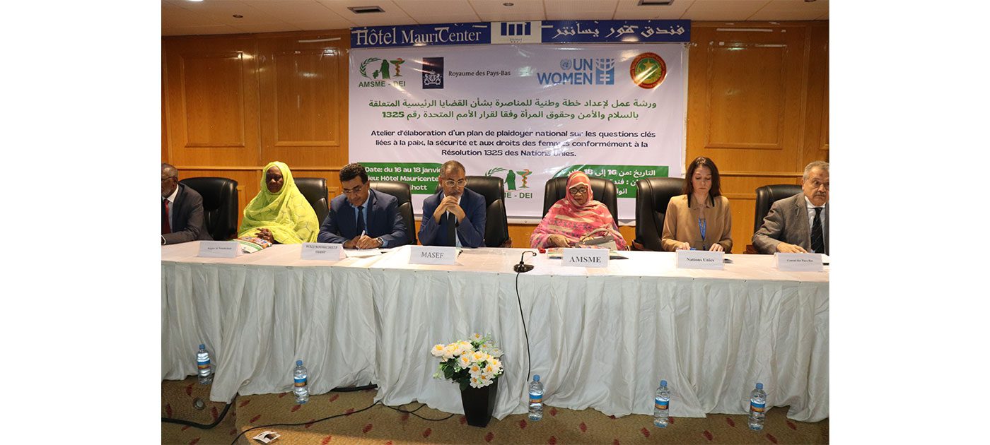 وحضر أعمال الورشة والي نواكشوط الغربية وممثلة لجهة نواكشوط إضافة لممثلي المنظمات النسائية والمدافعين عن حقوق المرأة والمساواة بين الجنسين وخبراء في مجالي السلام والأمن.