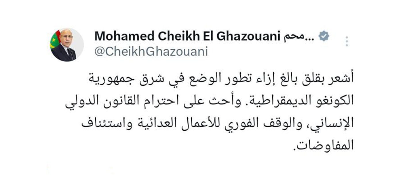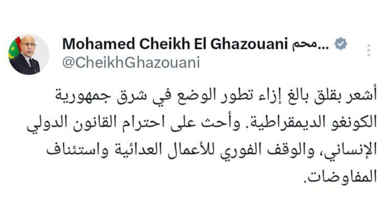 “أشعر بقلق بالغ إزاء تطور الوضع في شرق جمهورية الكونغو الديمقراطية. وأحث على احترام القانون الدولي الإنساني، والوقف الفوري للأعمال العدائية واستئناف المفاوضات”.