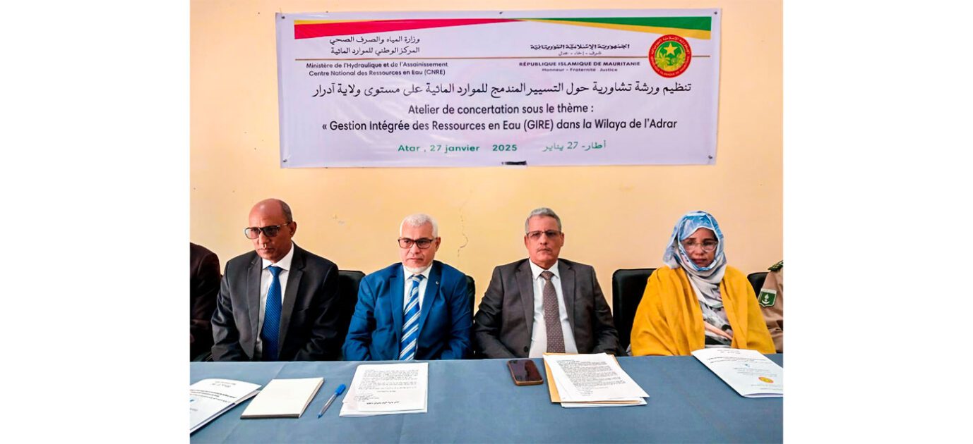 وأكد الوالي، في كلمة بالمناسبة، أن التسيير المندمج للموارد المائية يمثل أولوية قصوى ضمن برنامج فخامة رئيس الجمهورية، السيد محمد ولد الشيخ الغزواني، الهادف إلى توفير المياه الصالحة للشرب للمواطنين في مختلف مناطق الوطن.