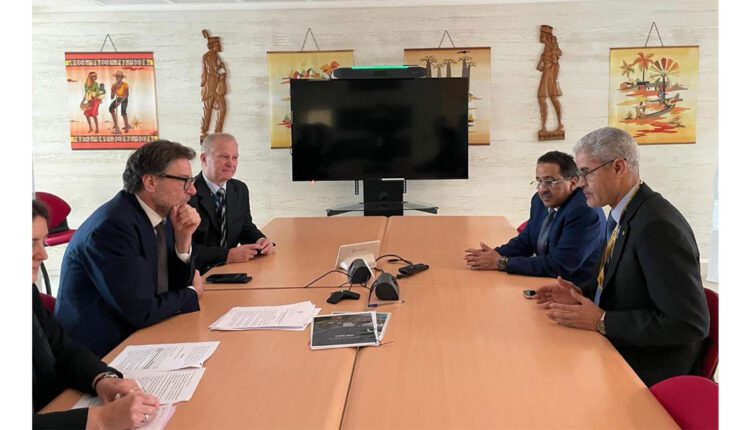 عقد معالي وزير الاقتصاد والمالية السيد سيد أحمد ولد ابُّوه اليوم الأربعاء في روما، على هامش اجتماعات مجلس المحافظين للصندوق الدولي للتنمية الزراعية، بمعالي جان كارلو جيورجيتي Giancarlo Giorgetti، وزير الاقتصاد والمالية في الجمهورية الإيطالية.
