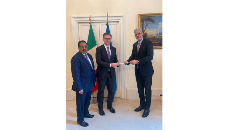 سلّم وزير الاقتصاد والمالية السيد سيد أحمد ولد ابُّوه، اليوم الجمعة في قصر الحكومة بروما، رسالة خطية موجهة من فخامة رئيس الجمهورية السيد محمد ولد الشيخ الغزواني إلى السيدة جيورجيا ميلوني، رئيسة الوزراء الإيطالية.