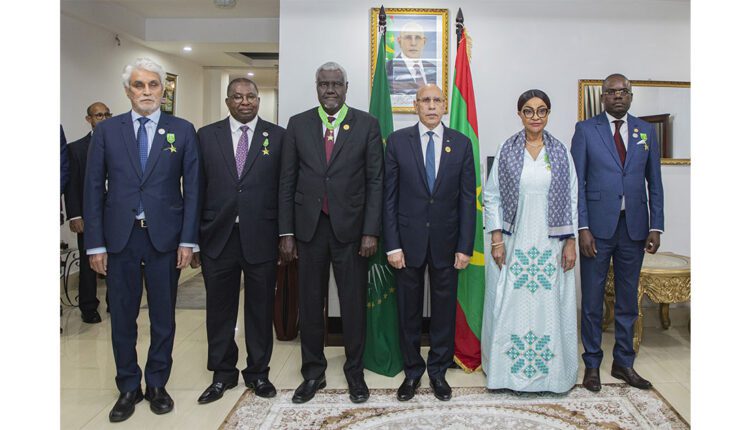 وشح فخامة رئيس الجمهورية، السيد محمد ولد الشيخ الغزواني، مساء اليوم في مقر السفارة الموريتانية في أديس أبابا (أثيوبيا)، رئيس مفوضية الاتحاد الإفريقي، المنتهية ولايته سعادة السيد موسى فكي محمد، ومجموعة من كبار موظفي الاتحاد الإفريقي، تقديرا للجهود الكبيرة التي بذلوها من أجل إفريقيا طيلة فترة توليه الرئاسة الدورية للاتحاد الإفريقي.