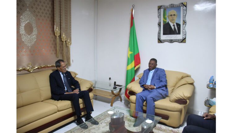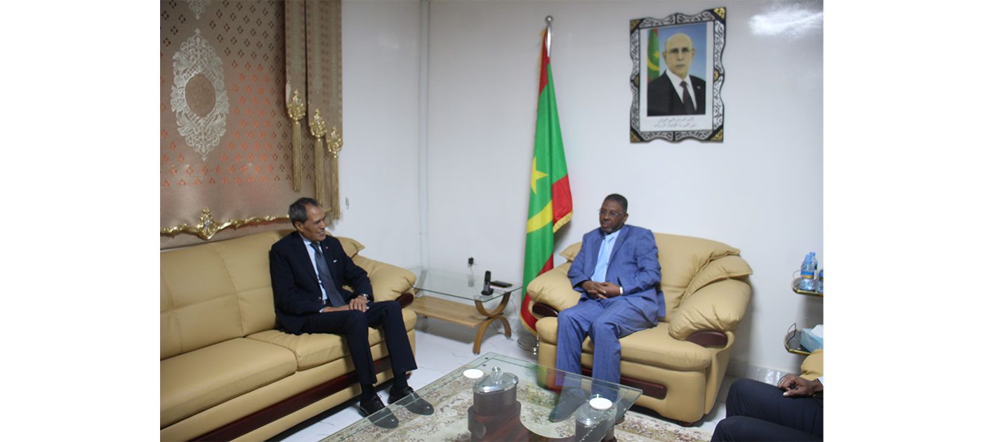 استقبل معالي الوزير المنتدب لدى وزير الداخلية وترقية اللامركزية والتنمية المحلية المكلف باللامركزية والتنمية المحلية, السيد يعقوب ولد سالم فال، اليوم الخميس بمكتبه في نواكشوط, سعادة السيد حميد شبار، سفير المملكة المغربية المعتمد لدى موريتانيا.