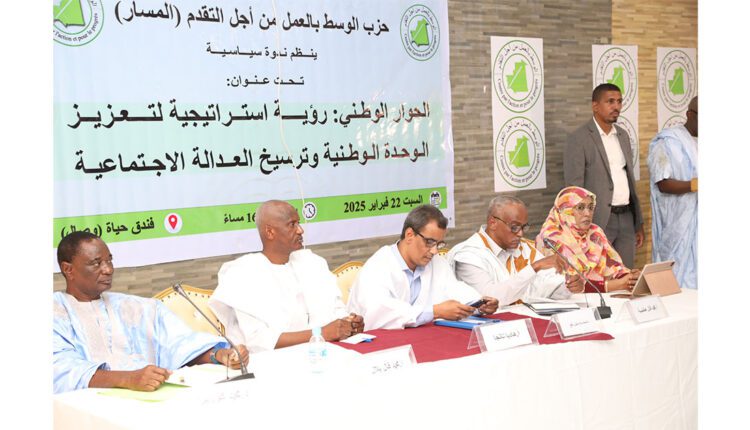 نظم حزب الوسط بالعمل من أجل التقدم “المسار” مساء اليوم السبت، في نواكشوط، ندوة سياسية تحت عنوان “الحوار الوطني رؤية استراتيجية لتعزيز الوحدة الوطنية وترسيخ العدالة الاجتماعية”.