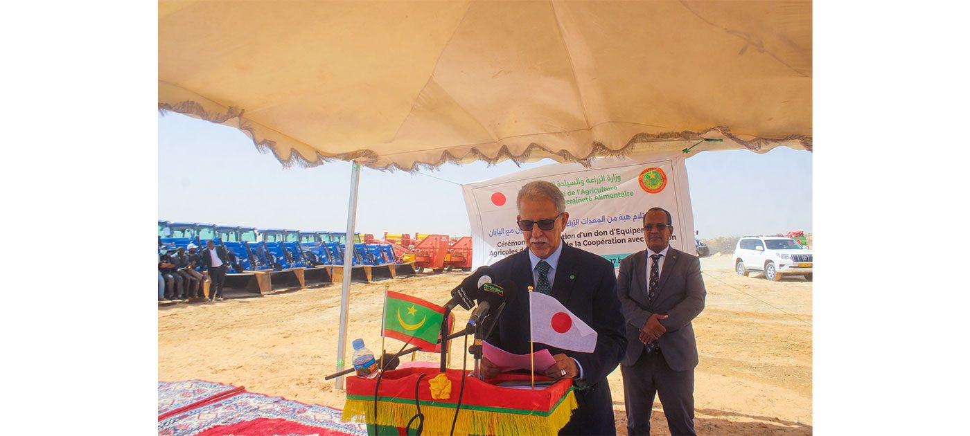 وأوضح معالي وزير الزراعة والسيادة الغذائية السيد أمم ولد بيباته في حفل استلام هذه المعدات، أن هذا الدعم يدخل في إطار التعاون المثمر والمتنوع الذي يربط بلادنا بامبراطورية اليابان، والذي شهد في العقود الأخيرة تطورا كبيرا يتعزز بفضل الإرادة القوية لقادة البلدين.