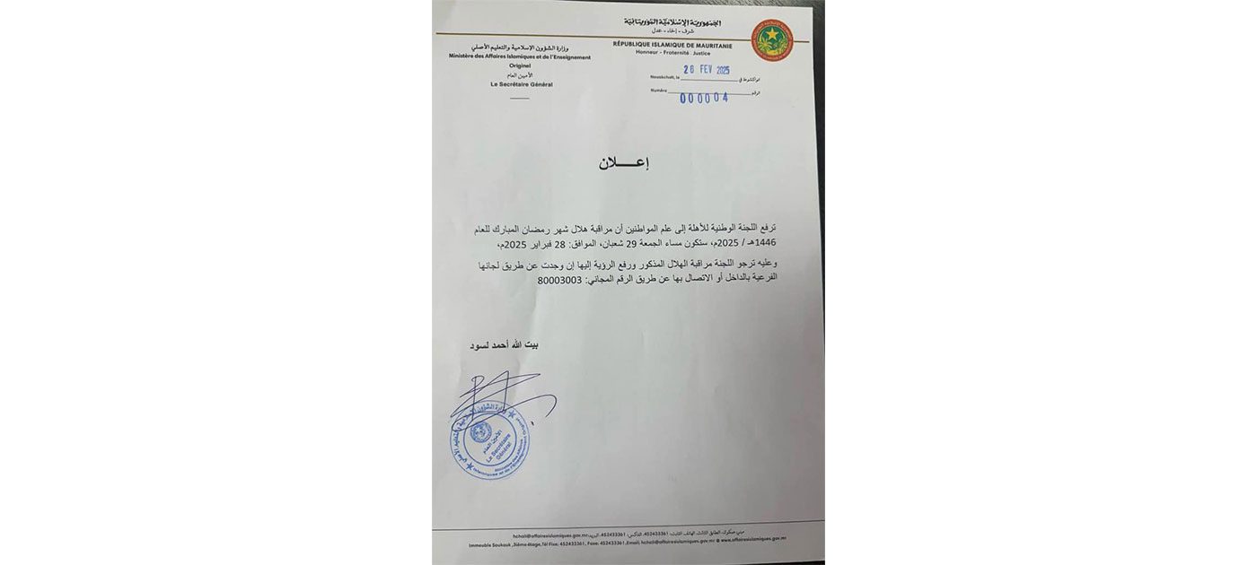 دعت اللجنة الوطنية للأهلة التابعة لوزارة الشؤون الإسلامية والتعليم الأصلي، جميع المواطنين إلى تحري رؤية هلال شهر رمضان المبارك للعام 1446هـ / 2025م، مساء الجمعة 29 شعبان الموافق 28 فبراير 2025م.