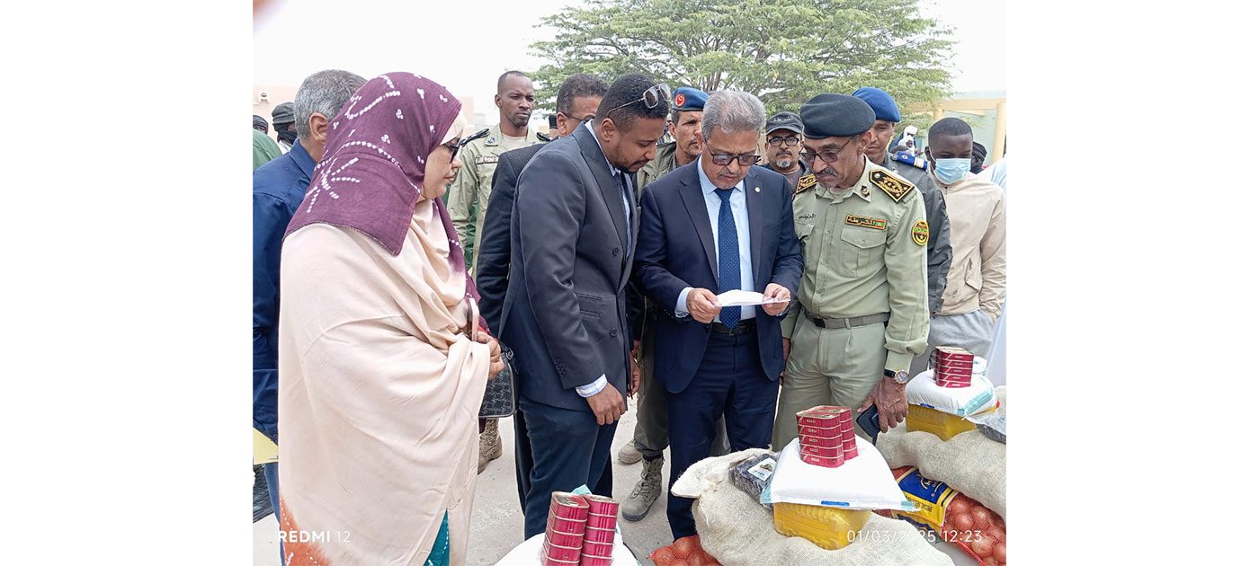 وعاين والي داخلت أنواذيبو، السيد ماحي ولد حامد، المخزون الموجود في هاتين النقطتين، واستفسر من القائمين على هذه العملية عن الطرق المتبعة لجعل هذه المواد في متناول المواطنين خاصة خلال هذا الشهر الفضيل.