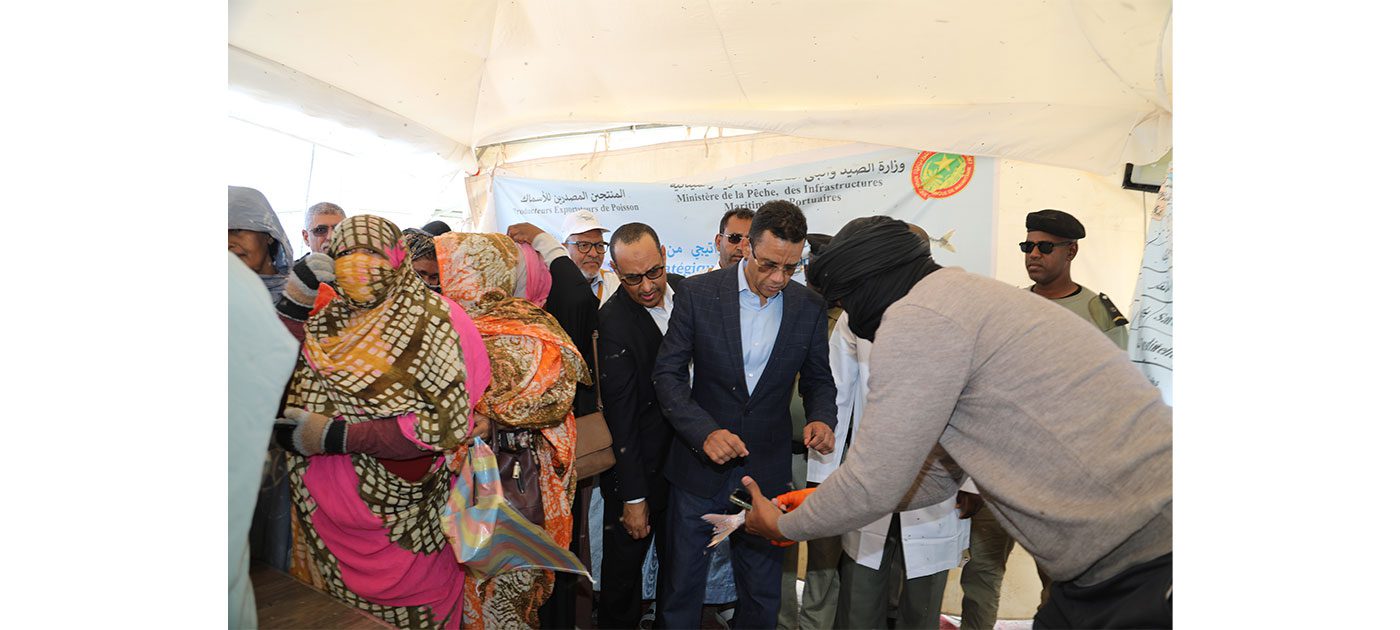 وزير الصيد يطلع على مخزونات الشركة الوطنية لتوزيع الاسماك ويشرف على توزيع مجاني لكميات من الاسماك بولاية نواكشوط الجنوبية