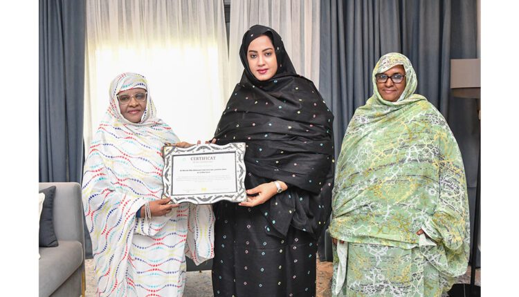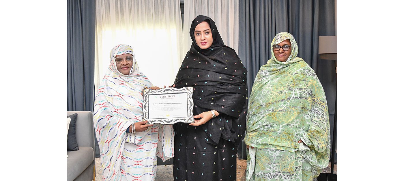وتم تقديم شهادة التكريم خلال لقاء مساء يوم الأربعاء (12 مارس 2025) في القصر الرئاسي، جمع السيدة الأولى الدكتورة مريم محمد فاضل الداه، بكل من رئيسة جمعية القابلات الموريتانيات، منسقة البرنامج الوطني للصحة الإنجابية السيدة فاطمة مولاي عبد الله، والأمينة العامة لجمعية القابلات الموريتانيات السيدة عائشة محمد الشيخ الحاج.