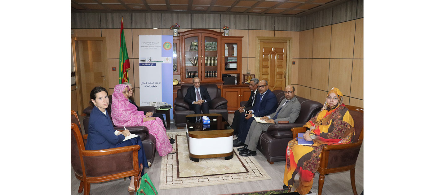 حضر اللقاء إلى جانب معالي الوزير كل من الأمين العام للوزارة السيد محمد أحمد عيده، والمستشار المكلف بالتعاون السيد أعمر القاسم، والمستشارة المكلفة بالاتصال والنفاذ إلى العدالة السيدة منت أحميد بنت التكرور، ومدير التعاون والتعاون القضائي البيني السيد الحسين الشيخ كبادي.