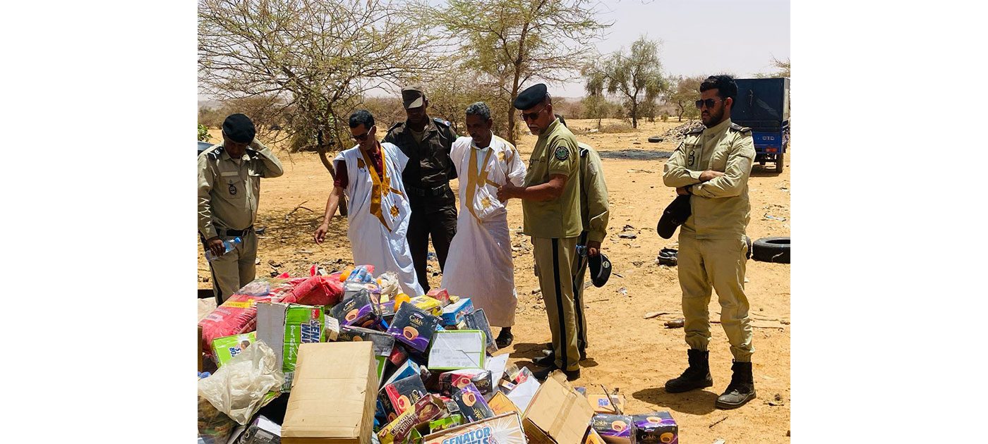 أشرف حاكم مقاطعة الطينطان المساعد، السيد إسحاق أحمد حمود، رفقة المندوب الجهوي لوزارة التجارة والسياحة، السيد سعدن شيخنا سيدي محمد، اليوم الخميس بمدينة الطينطان، على عملية إتلاف كمية من المواد الغذائية الفاسدة والمنتهية الصلاحية.
