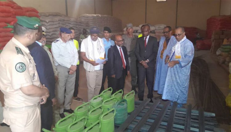 أشرف والي اينشيري السيد ادريس دمبا كوريرا، اليوم الاثنين في مخازن مفوضية الأمن الغذائي بمدينة اكجوجت على انطلاق برنامج الغذاء مقابل العمل المنفذ من طرف المفوضية لصالح التعاونيات الزراعية.