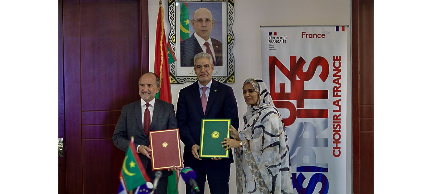 وقع معالي وزير الاقتصاد والمالية، السيد سيد أحمد ولد ابُّوه، مساء اليوم الثلاثاء بنواكشوط، مع سعادة سفير الجمهورية الفرنسية، السيد ألكساندر كارسيا، بروتوكولاً مالياً لدعم مشروع توسعة شبكة نقل مياه آفطوط الساحلي، بقيمة 43 مليون يورو، أي ما يعادل 1.85 مليار أوقية جديدة.