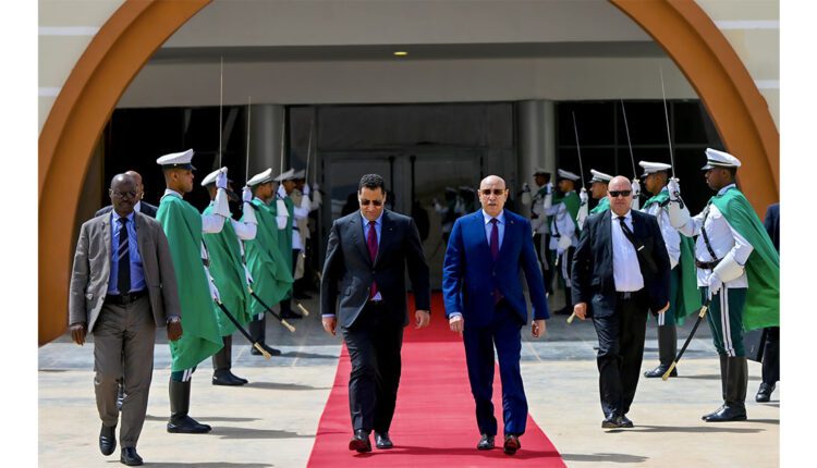 وودع فخامة رئيس الجمهورية عند سلم الطائرة بمطار نواكشوط الدولي “أم التونسي”، من طرف معالي الوزير الأول السيد المختار ولد أجاي، والوزير الأمين العام لرئاسة الجمهورية السيد مولاي ولد محمد لغظف، والوزيرين المستشارين برئاسة الجمهورية السيد محمد ولد عبد الله ولد عثمان، والسيدة عيساتا با يحيى، ووزير العدل السيد محمد محمود ولد الشيخ عبدالله بن بيه، ووزير الشؤون الخارجية والتعاون الإفريقي والموريتانيين في الخارج السيد محمد سالم ولد مرزوك، ووزير الداخلية وترقية اللامركزية والتنمية المحلية السيد محمد احمد ولد محمد الأمين، وقائد الأركان الخاصة لرئيس الجمهورية الفريق ابراهيم فال الشيباني الشيخ أحمد، والمديرة المساعدة لديوان رئيس الجمهورية السيدة غانديغا فاتيماتا، ووالي نواكشوط الغربية السيد امربيه ربو ولد بونن ولد عابدين، ونائبة رئيسة جهة نواكشوط السيدة هاو سيدي بى.