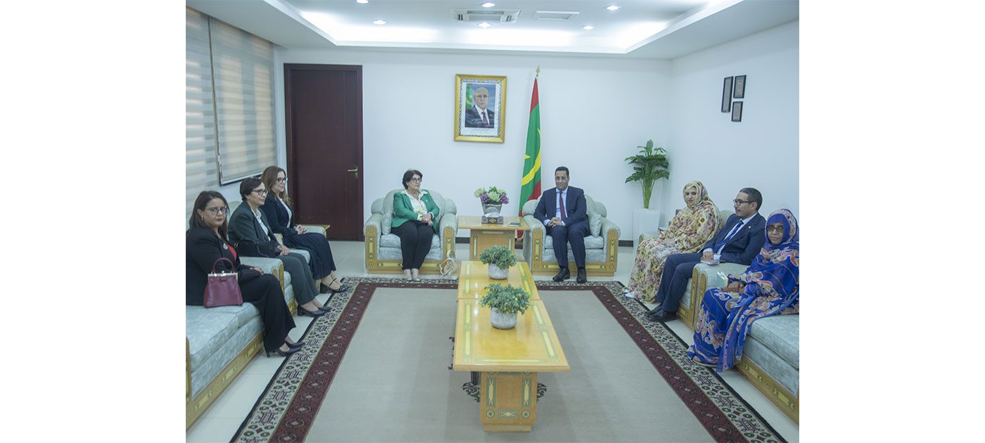 وجرى اللقاء بحضور معالي وزيرة العمل الاجتماعي والطفولة والأسرة السيدة صفية انتهاه، ومدير ديوان الوزير الأول السيد الشيخ ولد زيدان، ومستشارة الوزير الأول السيدة هند بنت عينينا.