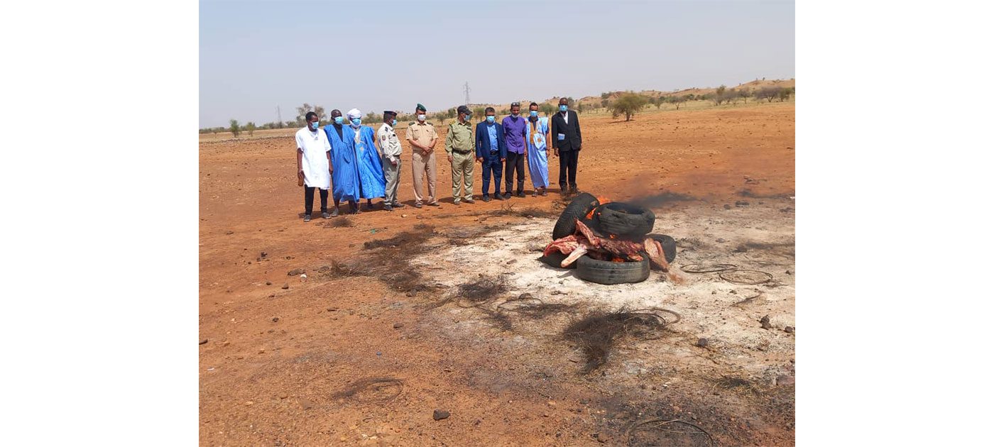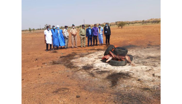 وأشرف حاكم المقاطعة السيد محمد ولد عبد الله، اليوم الثلاثاء، بحضور نائب عمدة البلدية، وممثل حماية المستهلك، والسلطات الصحية والبيطرية والأمنية، على إحراق لحوم هذه البقرة.