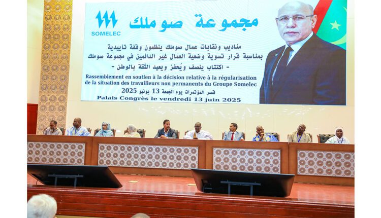 نظم مناديب نقابات وعمال الشركة الموريتانية للكهرباء، مساء اليوم الجمعة في نواكشوط، حفلا أعلنوا خلاله شكرهم لفخامة رئيس الجمهورية، السيد محمد ولد الشيخ الغزواني، وتثمينهم العالي للقرار الذي اتخذه سيادته والقاضي بتسوية وضعية 868 موظفا من العمال غير الدائمين في هذه الشركة.