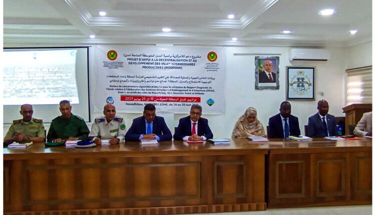 أشرف والي داخلت نواذيبو، السيد ماحي ولد حامد، اليوم الإثنين في نواذيبو على افتتاح ورشة تشاورية للمصادقة على التقرير التشخيصي للدراسة المتعلقة بإعداد المخططات التوجيهية للاستصلاح و العمران في مدن نواذيبو و أطار و ازويرات وكيهيدي و سيلبابي.