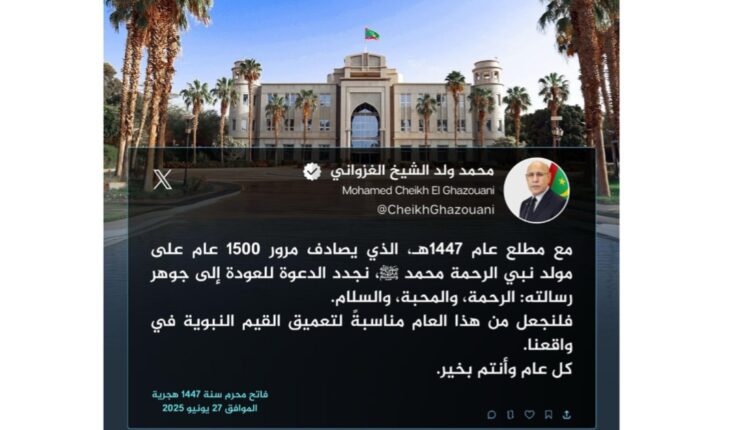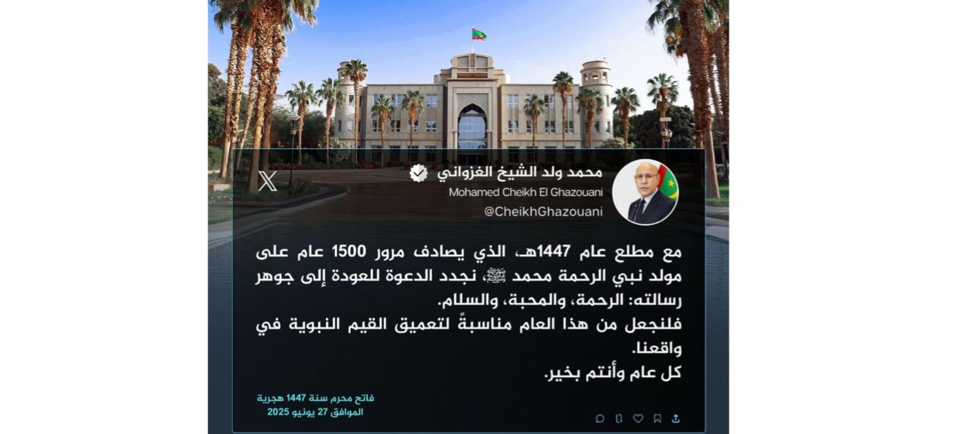 هنأ فخامة رئيس الجمهورية السيد محمد ولد الشيخ الغزواني الشعب الموريتاني بحلول العام الهجري الجديد.