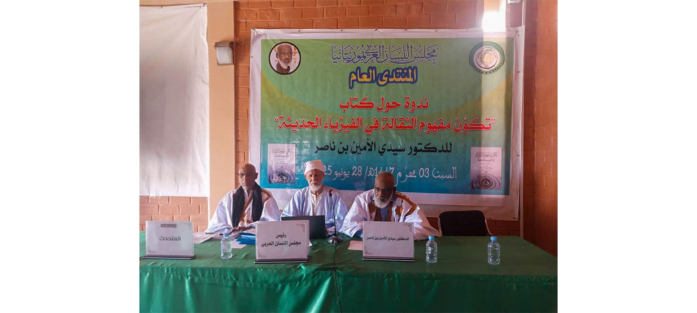 نظم مجلس اللسان العربي في موريتانيا، اليوم السبت بمقره في نواكشوط، ندوة علمية لمناقشة كتاب “تكوّن مفهوم الثقالة في الفيزياء الحديثة”، لمؤلفه سيدي الأمين بن ناصر.