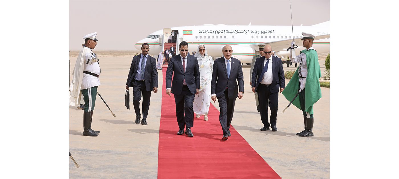 واستقبل فخامة رئيس الجمهورية لدى وصوله عند سلم الطائرة بمطار نواكشوط الدولي أم التونسي من طرف معالي الوزير الأول السيد المختار ولد أجاي، والوزير الأمين العام لرئاسة الجمهورية السيد مولاي ولد محمد لغظف، والوزيرين المستشارين برئاسة الجمهورية السيد محمد ولد عبد الله ولد عثمان، والسيدة عيساتا با يحيى، ووزير العدل السيد محمد محمود ولد الشيخ عبدالله بن بيه، ووزير الشؤون الخارجية والتعاون الإفريقي والموريتانيين في الخارج السيد محمد سالم ولد مرزوك، ووزير الدفاع وشؤون المتقاعدين وأولاد الشهداء السيد حننا ولد سيدي، ووزير الداخلية وترقية اللامركزية والتنمية المحلية السيد محمد احمد ولد محمد الأمين، وقائد الأركان الخاصة لرئيس الجمهورية الفريق ابراهيم فال الشيباني الشيخ أحمد، والمديرة المساعدة لديوان رئيس الجمهورية السيدة غانديغا فاتيماتا، ووالي نواكشوط الغربية السيد امربيه ربو ولد بونن ولد عابدين، ونائبة جهة نواكشوط السيدة هاوا سيدي بي.