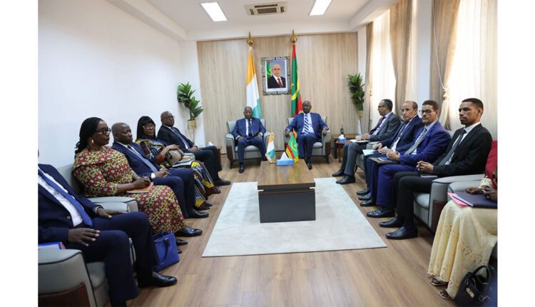 والسفير المدير العام للمديرية العامة للموريتانيين في الخارج، السيد محمد مولود محمد سالم، والسفيرة مديرة إفريقيا بالمديرية العامة للتعاون الثنائي، السيدة مريم عبد الله صاوو، إلى جانب أعضاء الوفد الايفواري.