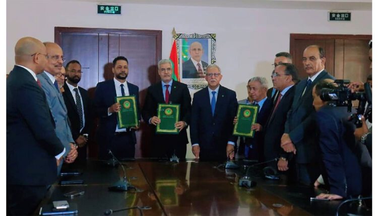 وقع معالي وزير الاقتصاد والمالية السيد سيد أحمد ولد أبوه ومعالي وزير الزراعة والسيادة الغذائية السيد أمم بيباته، اليوم الخميس في مباني وزارة الاقتصاد والمالية، على عقد شراكة بين القطاع العام والخاص يتعلق بمشروع المركب الزراعي الصناعي لإنتاج السكر في منطقة فم لگليته.