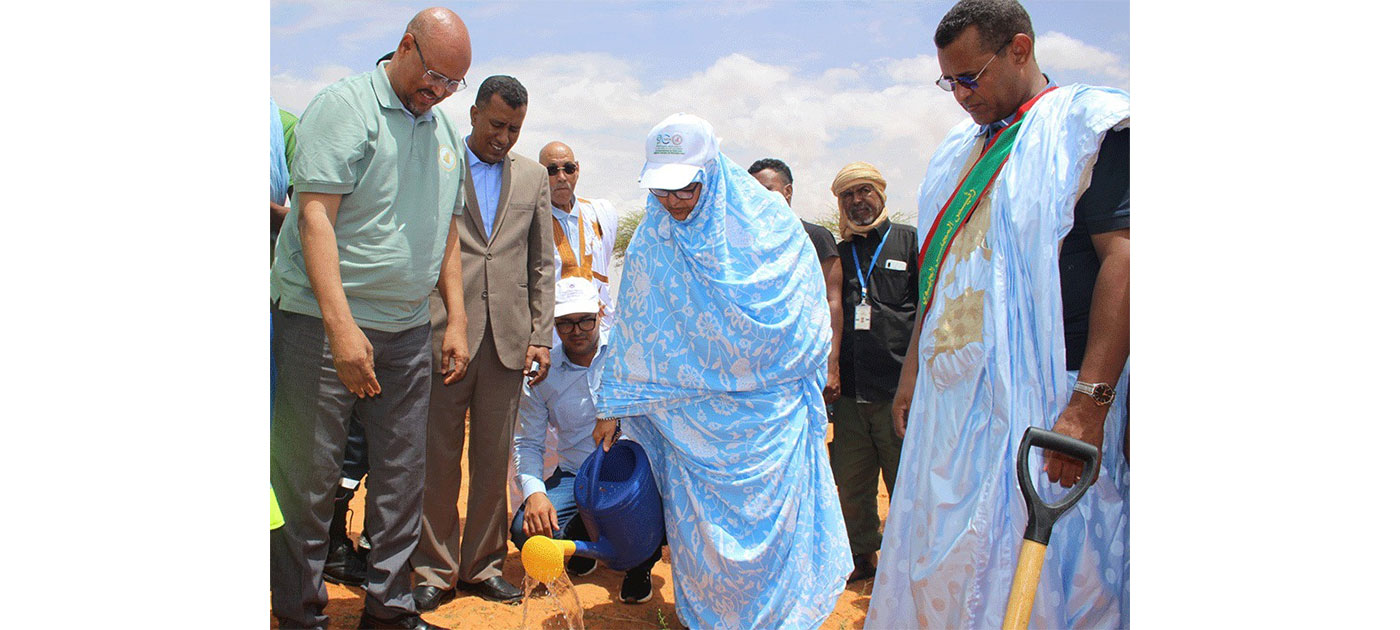 أشرفت معالي وزيرة البيئة والتنمية المستدامة السيدة مسعودة بنت بحام ولد محمد لغظف، رفقة والي الحوض الغربي المساعد الوالي وكالة السيد محمد ولد عبد الله ولد الشيخ سيديا، اليوم الأحد من بلدية ادويرار بولاية الحوض الغربي، على انطلاق حملة التشجير والبذر المباشر على مسار السور الأخضر الكبير.