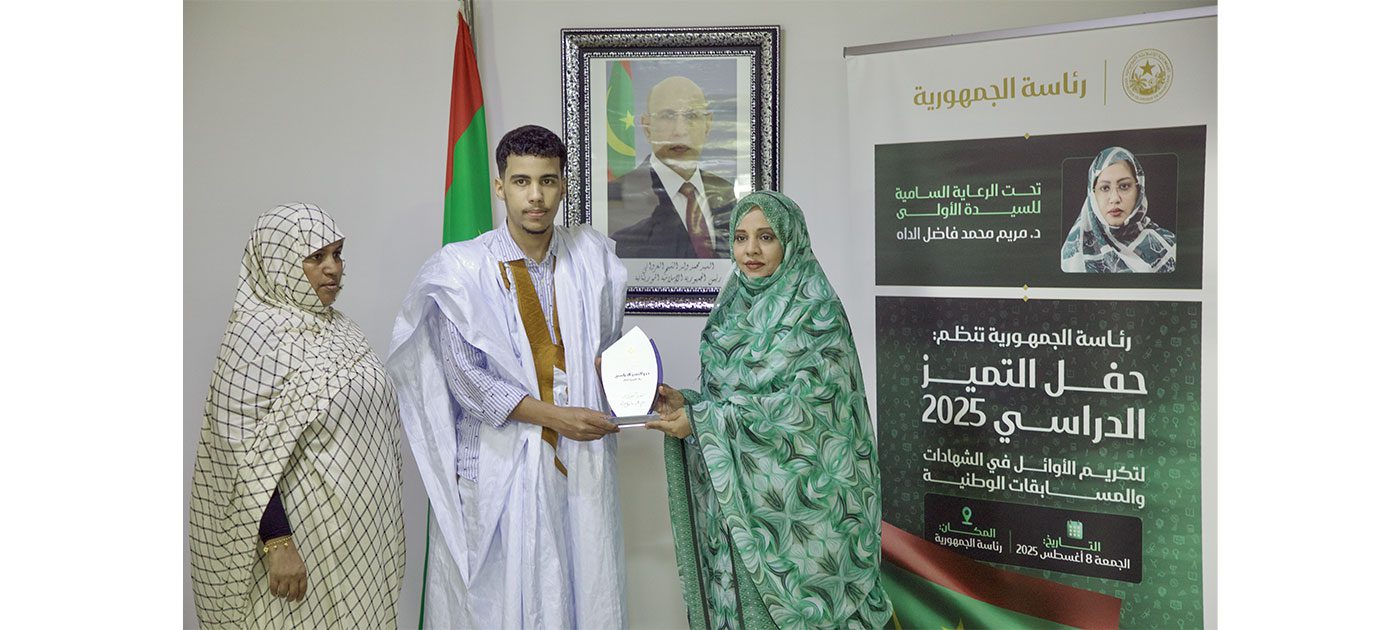 وكانت السيدة الأولى، قد أشرفت مساء أمس الجمعة بالقصر الرئاسي في نواكشوط، على حفل تكريم الطلبة المتفوقين في الامتحانات الوطنية، بما فيهم بعض الطلاب من ذوي الهمم، والذين يعتبر هذا التكريم مواصلة لجهودهم.