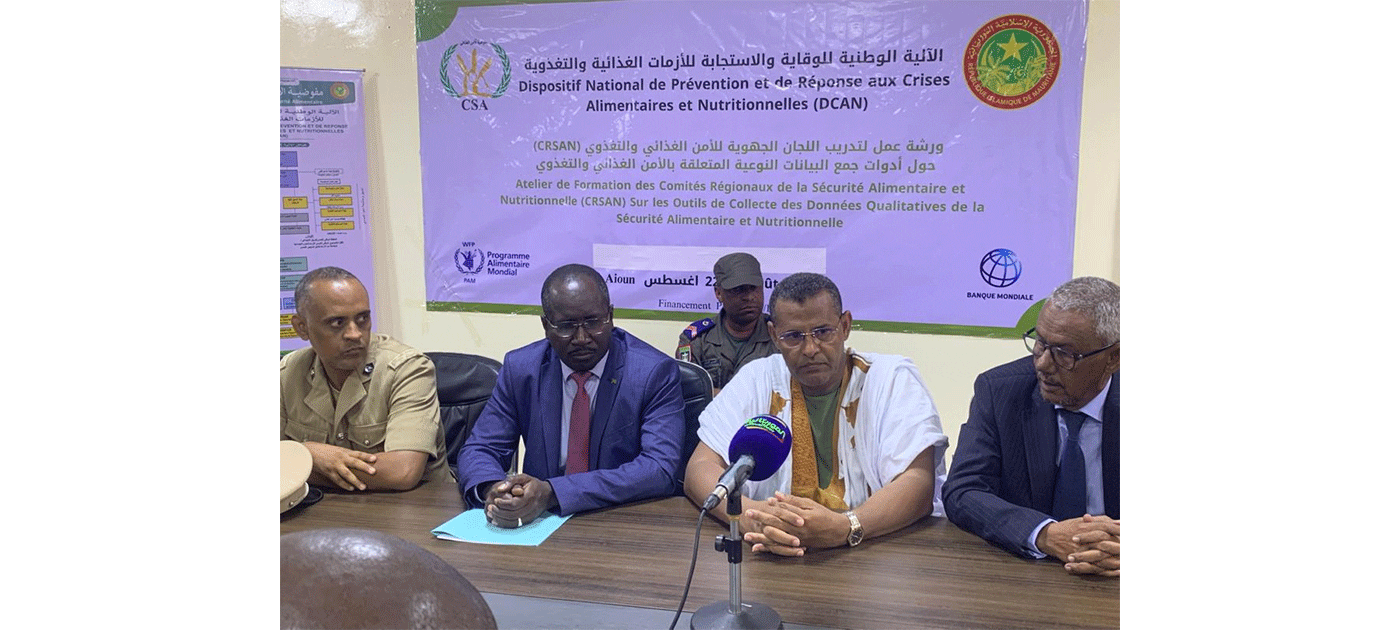 ويشارك في هذه الورشة المنظمة من طرف مفوضية الأمن الغذائي عن طريق الآلية الوطنية للوقاية والاستجابة للأزمات الغذائية والتغذوية المسؤولون الجهويون للأمن الغذائي، والزراعة والسيادة الغذائية، والتنمية الحيوانية، والمياه والصرف الصحي، والتجارة والسياحة، والصحة، في ولايات الحوض الغربي والحوض الشرقي ولعصايه.