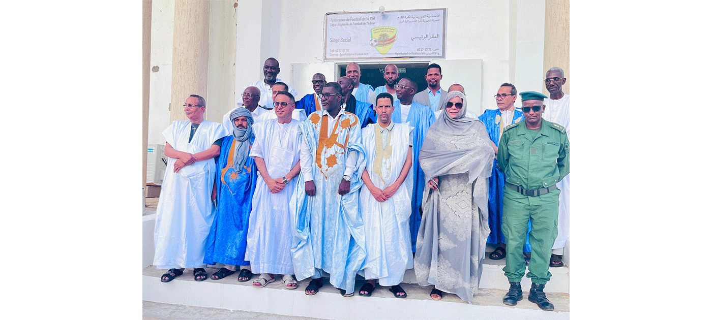 أشرف والي آدرار المساعد، السيد سيد محمد ولد اسويلم، رفقة رئيس الاتحادية الموريتانية لكرة القدم، السيد أحمد ولد يحيى، أمس السبت في مدينة أطار، على افتتاح مقر العصبة الجهوية لكرة القدم على مستوى ولاية آدرار.