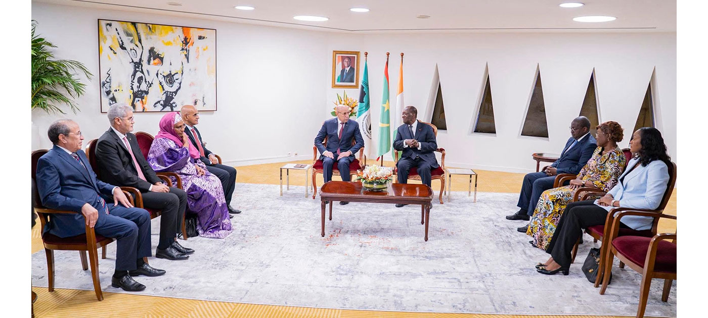 وحضر اللقاء إلى جانب فخامة رئيس الجمهورية، معالي الوزير المكلف بديوان رئيس الجمهورية السيد الناني ولد اشروقه، ومعالي الوزيرة المستشارة برئاسة الجمهورية السيدة عيساتا با يحيى، ومعالي وزير الاقتصاد والمالية السيد سيد أحمد ولد أبوه، وسفير بلادنا لدى كوت ديفوار سعادة السيد محمد عبد الله خطره.