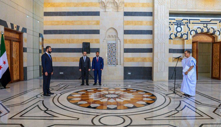قدم سعادة السيد الطالب المختار الشيخ محمد المجتبى، اليوم السبت بقصر الشعب في دمشق، أوراق اعتماده لفخامة رئيس الجمهورية العربية السورية السيد أحمد الشرع، بصفته سفيرا فوق العادة وكامل السلطة للجمهورية الإسلامية الموريتانية لدى الجمهورية العربية السورية.