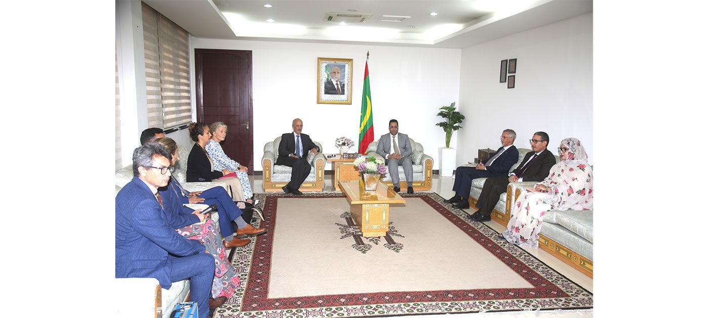 معالي مفوض حقوق الإنسان والعمل الإنساني والعلاقات مع المجتمع المدني السيد سيد أحمد ولد بنان، ومدير ديوان الوزير الأول السيد الشيخ ولد زيدان، ومستشارة الوزير الأول المكلفة بحقوق الإنسان السيدة فاطمة بنت انجيان.