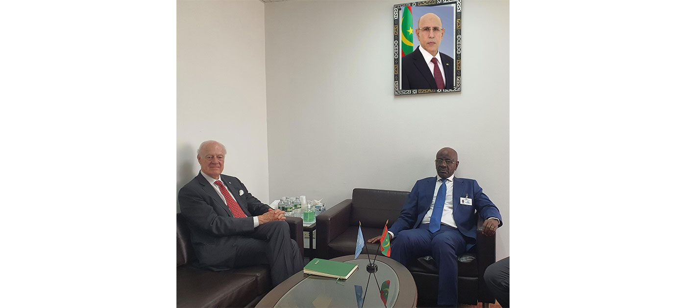 استقبل معالي وزير الشؤون الخارجية والتعاون الإفريقي والموريتانيين في الخارج السيد محمد سالم ولد مرزوك، اليوم الأربعاء في نيويورك، على هامش اجتماعات الجمعية العامة للأمم المتحدة، سعادة السيد استيفان دي مستوررا، مبعوث الأمين العام للأمم المتحدة المكلف بملف الصحراء الغربية.