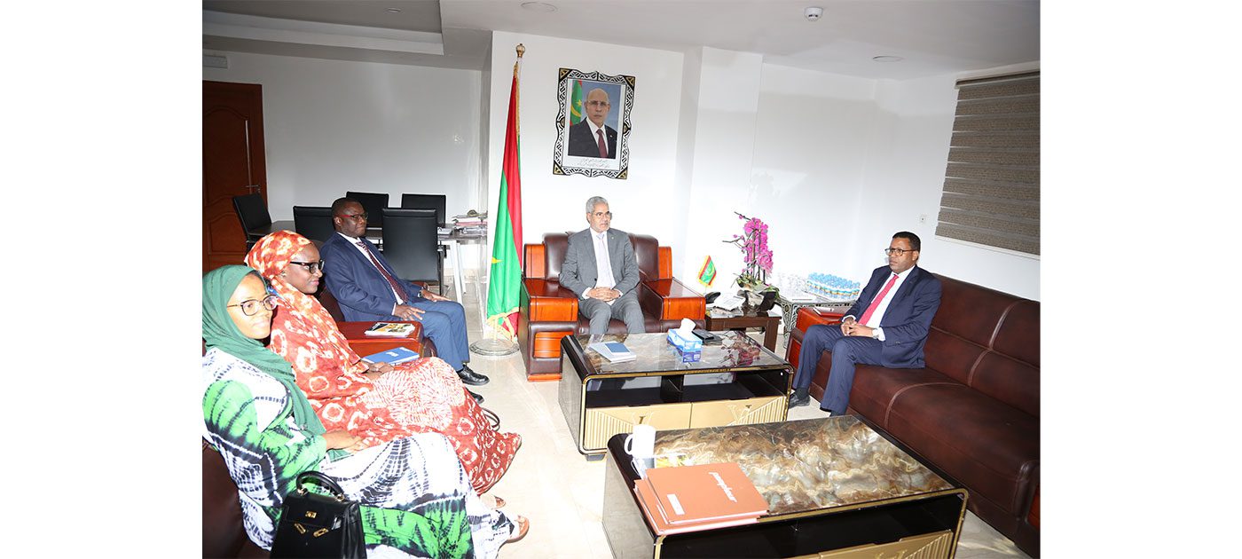 وجرى اللقاء بحضور الأمين العام لوزارة الزراعة والسيادة الغذائية السيد أحمد سالم ولد العربي ومدير البرمجة والإحصاء والتعاون والمتابعة والتقييم السيد عبدالله ولد باب زياد.