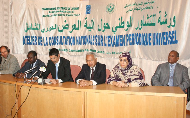 وفي كلمته الافتتاحية لأعمال هذه الورشة أوضح السيد محمد الأمين ولد الداده مفوض حقوق الانسان والعمل الانساني والعلاقات مع المجتمع المدني أن بلادنا التي انتخبت مؤخرا عضوا في مجلس حقوق الانسان التابع للامم المتحدة ستخضع في العاشر من نوفمبر القادم لآلية الاستعراض الدوري الشامل، وهي آلية من أهم آليات مجلس حقوق الانسان التي يقوم من خلالها بمراجعة الحالة العامة لحقوق الانسان في جميع الدول الاعضاء.