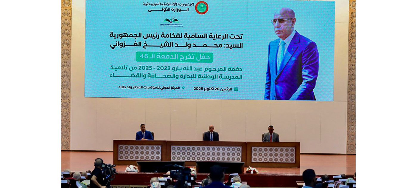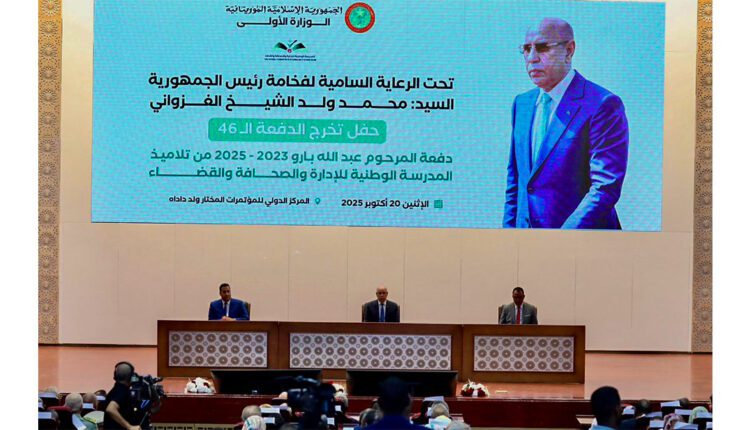 أشرف فخامة رئيس الجمهورية السيد محمد ولد الشيخ الغزواني، مساء اليوم الاثنين، بالمركز الدولي للمؤتمرات “المختار ولد داداه”، على حفل تخرج الدفعة الـ46 للمدرسة الوطنية للإدارة والصحافة والقضاء.