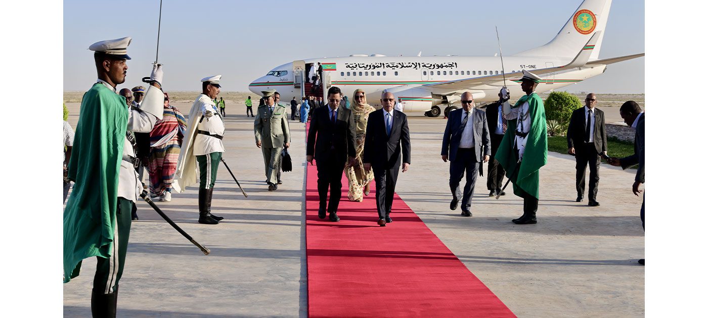 واستقبل فخامة رئيس الجمهورية بمطار نواكشوط الدولي “أم التونسي” من طرف معالي الوزير الأول، السيد المختار ولد أجاي، والوزير الأمين العام لرئاسة الجمهورية، السيد مولاي ولد محمد لغظف، والوزيرين المستشارين برئاسة الجمهورية، السيد محمد محمود ولد الشيخ عبد الله بن بيه، والسيدة عيساتا با، ووزير الشؤون الخارجية والتعاون الإفريقي والموريتانيين في الخارج، السيد محمد سالم ولد مرزوك، ووزير الدفاع وشؤون المتقاعدين وأولاد الشهداء، السيد حنن ولد سيدي، ووزير الداخلية وترقية اللامركزية والتنمية المحلية، السيد محمد أحمد ولد محمد الأمين، وقائد الأركان الخاصة لرئيس الجمهورية، الفريق محمد المختار الشيخ مني، والمديرة المساعدة لديوان رئيس الجمهورية، السيدة غانديغا فاتيماتا، ووالي نواكشوط الغربية، السيد امربيه ربو ولد بونن ولد عابدين، ورئيسة جهة نواكشوط، السيدة فاطمة بنت عبد المالك.
