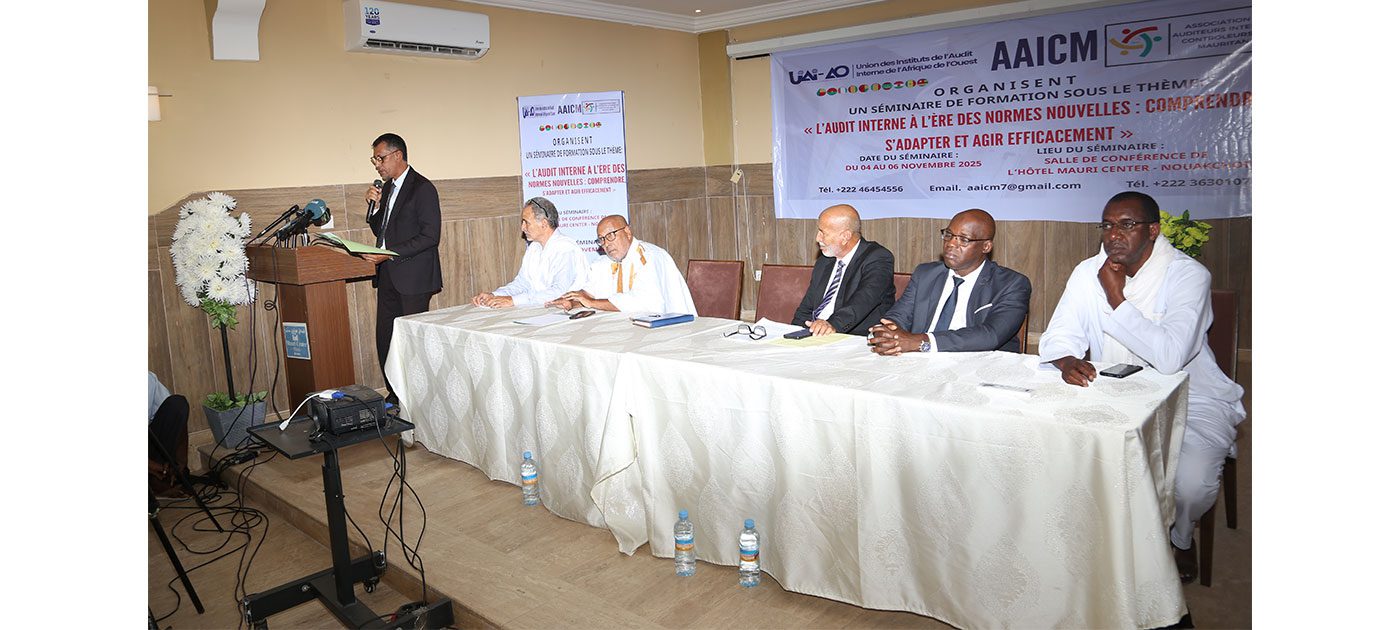 من جانبه، أشار رئيس جمعية المدققين الداخليين والمراجعين الماليين، السيد محمد محمود ولد إسلم، إلى أن انعقاد هذه الندوة تحت هذا الشعار يجسد التزاما مشتركا برفع كفاءة المهنيين في مجال الرقابة والتدقيق، ويساهم في ترسيخ مبادئ الشفافية والحوكمة الرشيدة في مؤسساتنا الوطنية.