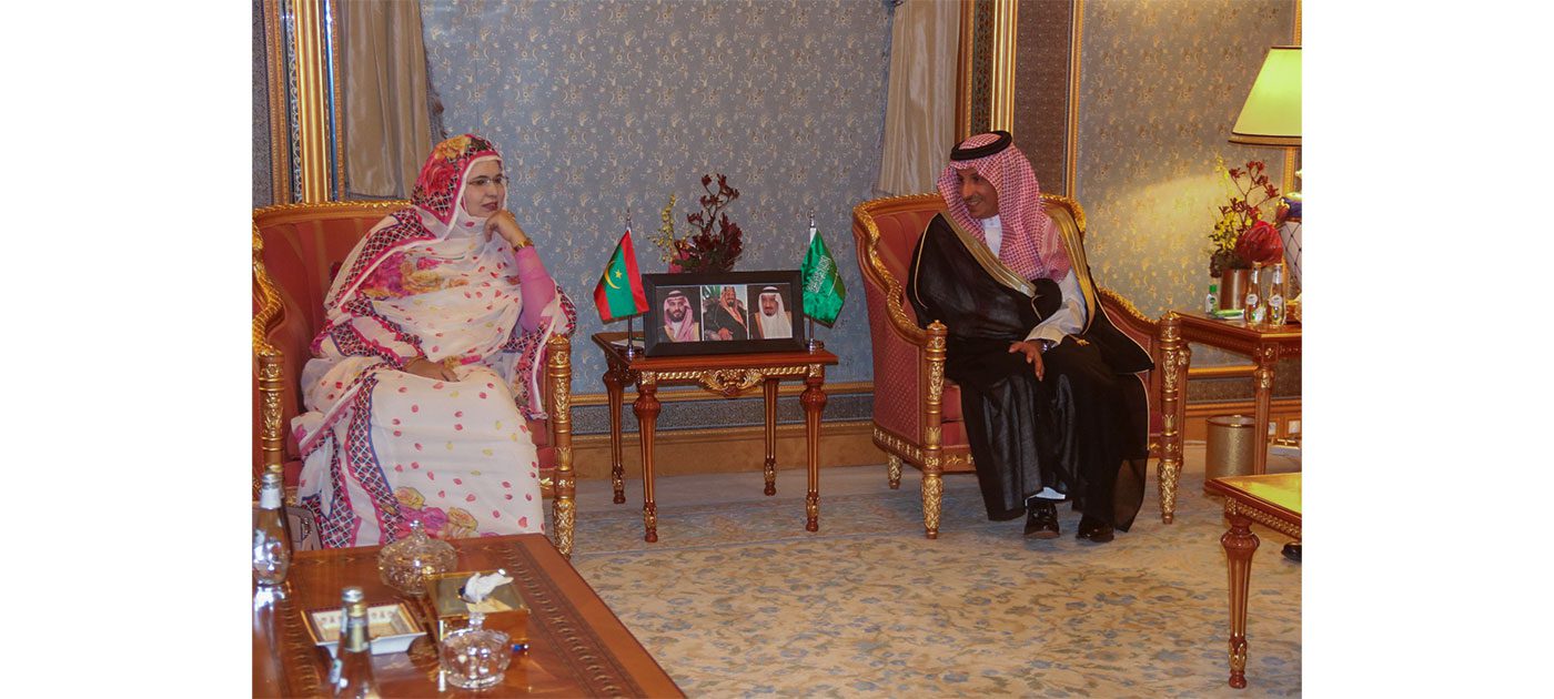 وجري اللقاء بحضور سعادة سفير بلادنا بالمملكة العربية السعودية السيد المختار ولد داهي، ومن الجانب السعودي السيد سلطان المرشد الرئيس التنفيذي للصندوق السعودي للتنمية والأميرة سارا بنت عبد العزيز آل سعود المشرف العام على وكالة الشؤون الدولية وشخصيات سامية من وزارة التجارة والسياحة بموريتانيا ووزارة السياحة بالمملكة العربية السعودية.
