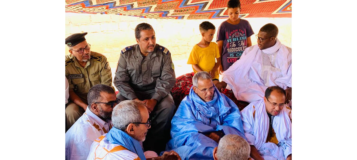 رافق الوالي خلال تقديم التعازي حاكم مقاطعة كرو السيد محمد عبد الله ولد إيسلم، ومستشار والي لعصابه المكلف بالشؤون الاقتصادية والتنمية المحلية، والسلطات الأمنية في الولاية.