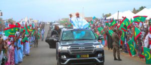 وقد خصص سكان مقاطعة جكني استقبالا شعبيا حارا لفخامة رئيس الجمهورية، حيث اصطف المواطنون على جانبي الطريق الرابط بين مهبط الطائرة ومقر إقامة فخامته، رافعين صوره المكبرة، واللافتات التي تحمل عبارات الترحيب بهذه الزيارة.