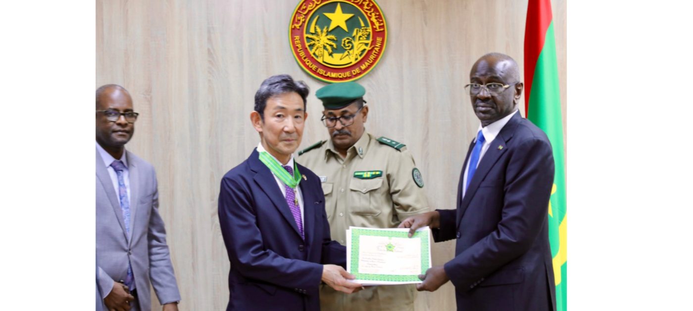 وشح معالي وزير الشؤون الخارجية والتعاون الإفريقي والموريتانيين في الخارج، السيد محمد سالم ولد مرزوك، باسم فخامة رئيس الجمهورية السيد محمد ولد الشيخ الغزواني، اليوم الاثنين بمقر الوزارة، سعادة السيد انشيدا تاتسوكوني، سفير إمبراطورية اليابان، بوسام كوماندور في نظام الاستحقاق الوطني، وذلك بمناسبة انتهاء مهامه في موريتانيا.