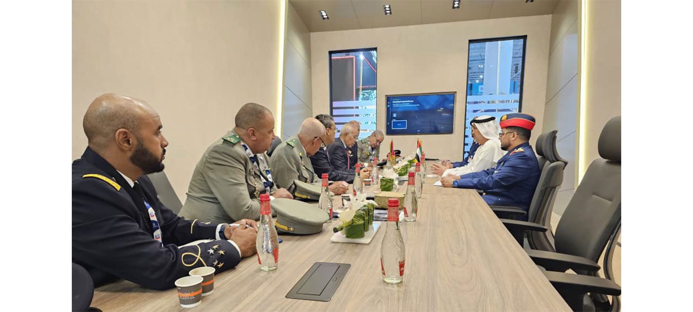 والتقى معالي وزير الدفاع وشؤون المتقاعدين وأولاد الشهداء، على هامش فعاليات المعرض، بمعالي وزير الدولة لشؤون الدفاع الاماراتي السيد محمد بن مبارك بن فاضل المزروعي، تناول تعزيز العلاقات الثنائية بين البلدين في المجال العسكري و الأمني وسبل تطويرها.