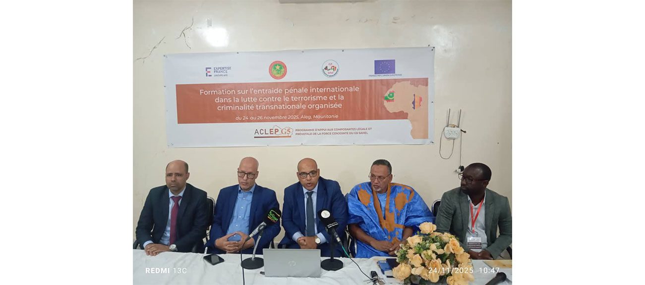 بدوره أوضح ممثل برنامج دعم المكونين القانونيين والشرطيين للقوة المشتركة لمجموعة دول الساحل الخمس السيد ابراهيم صل، أن برنامج (ACLEP‑G5) يهدف إلى دعم الفاعلين في محاربة الإرهاب والجريمة العابرة للحدود، معربا عن أمله في أن يفضي التكوين إلى نتائج من شأنها محاربة الإرهاب والجريمة المنظمة في منطقة الساحل.