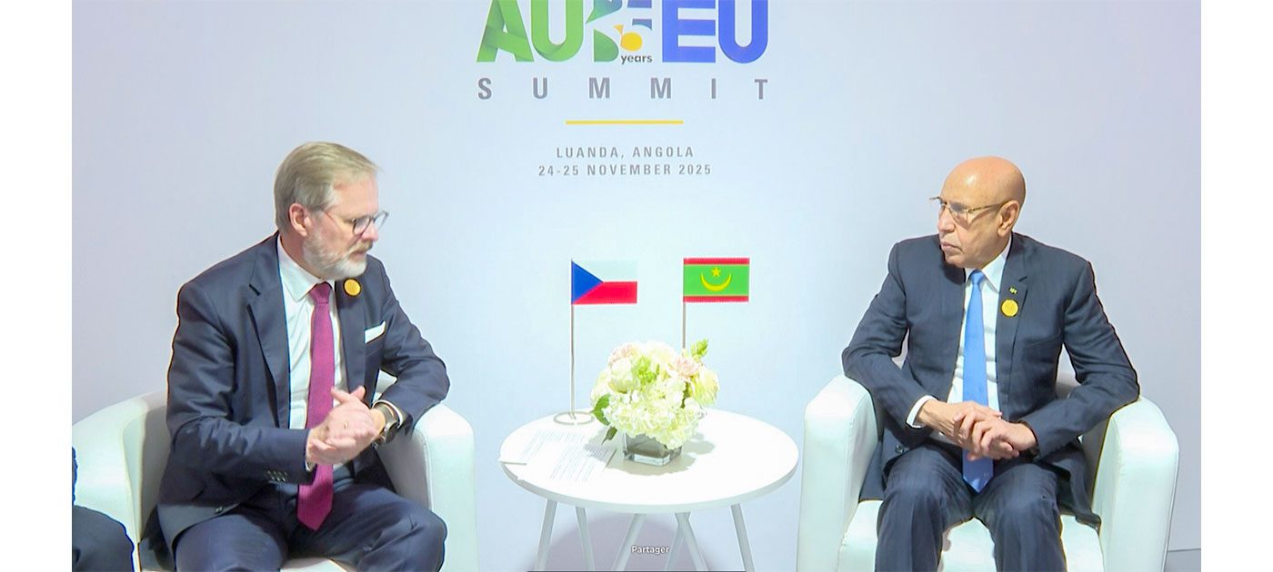 استقبل فخامة رئيس الجمهورية، السيد محمد ولد الشيخ الغزواني، اليوم الاثنين، معالي الوزير الأول التشيكي السيد بيتر فيالا، وذلك على هامش القمة السابعة بين الاتحاد الإفريقي والاتحاد الأوروبي في العاصمة الأنغولية لواندا.