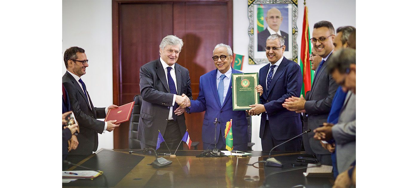 وقع معالي وزير الشؤون الاقتصادية والتنمية، السيد عبد الله سليمان الشيخ سيديا مع الوزير المنتدب للتجارة الخارجية وجاذبية الاستثمار الفرنسي، السيد نيكولاس فوريسييه، اليوم الثلاثاء في نواكشوط، على اتفاقية قرض ميسّر لتمويل مشروع إنشاء 10 محطات شمسية مزوّدة بوحدات تخزين، بمبلغ 39.223.671 يورو، أي ما يعادل (1.817.000.000) أوقية جديدة.