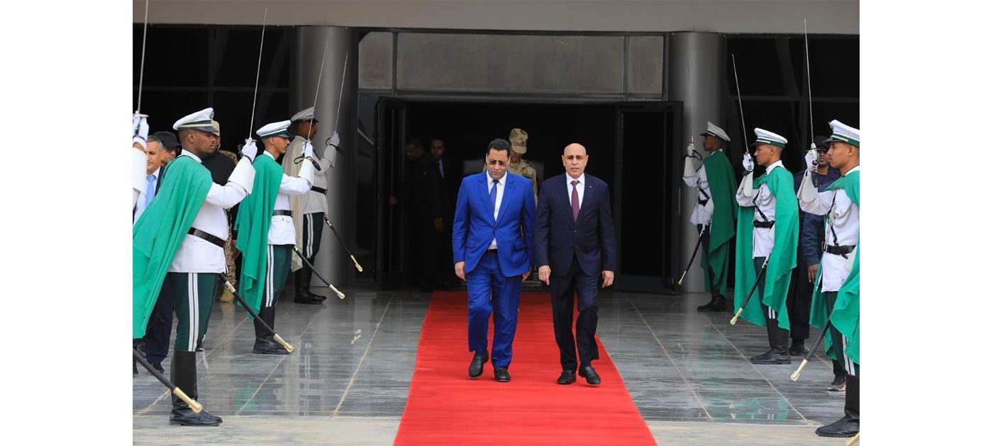 وودع فخامة رئيس الجمهورية بمطار نواكشوط الدولي أم التونسي من طرف معالي الوزير الأول السيد المختار ولد أجاي، ومعالي الوزير الأمين العام لرئاسة الجمهورية السيد مولاي ولد محمد لغظف، ومعالي الوزيرين المستشارين برئاسة الجمهورية السيد محمد محمود ولد الشيخ عبدالله بن بيه والسيدة عيساتا با يحيى، ومعالي وزير العدل السيد محمد ولد اسويدات، ومعالي وزير الشؤون الخارجية والتعاون الإفريقي والموريتانيين في الخارج السيد محمد سالم ولد مرزوك، ومعالي وزير الداخلية وترقية اللامركزية والتنمية المحلية السيد محمد احمد ولد محمد الأمين، وقائد الأركان الخاصة لرئيس الجمهورية الفريق محمد المختار الشيخ آمني، والمديرة المساعدة لديوان رئيس الجمهورية السيدة غانديغا فاتيماتا، ووالي نواكشوط الغربية السيد امربيه ربو ولد بونن ولد عابدين، ورئيسة جهة نواكشوط السيدة فاطمة بنت عبد المالك.