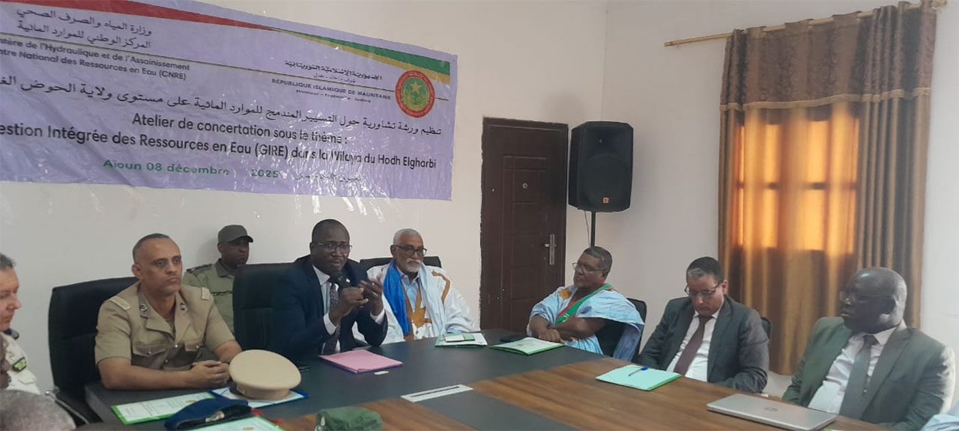 من جانبه، أكد رئيس المركز الوطني للموارد المائية، السيد محمد الأمين ولد خطري، أن المركز أطلق منذ 2024 مساراً عاماً لاعتماد نهج التسيير المندمج للموارد المائية، عبر تنظيم ورشات جهوية في ولايتي آدرار وتكانت باعتبارهما من المناطق الأكثر تعرضاً للإجهاد المائي وشح الموارد الجوفية.